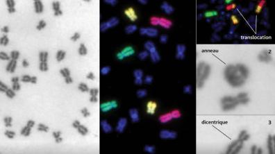 Reste à soigner les personnes irradiées. Certaines peuvent être évacuées vers des hôpitaux civils ou militaires (HIA Percy) pour une prise en charge spécialisée. Un paramètre est alors crucial : la dose de radiations reçue et sa distribution. Car ce sont elles qui guideront le traitement. Une première méthode consiste à faire une analyse de sang pour compter les anomalies observées sur les chromosomes des lymphocytes T. « Les rayonnements ionisants cassent les deux brins d'ADN, explique en effet Gaëtan Gruel, chercheur en radiobiologie à l’IRSN. Les cellules ont des mécanismes de réparation, mais des erreurs peuvent survenir et conduire à la formation de structures chromosomiques anormales, issues de fusions de chromosomes. » Plus la dose reçue est forte, plus ces aberrations chromosomiques sont nombreuses.