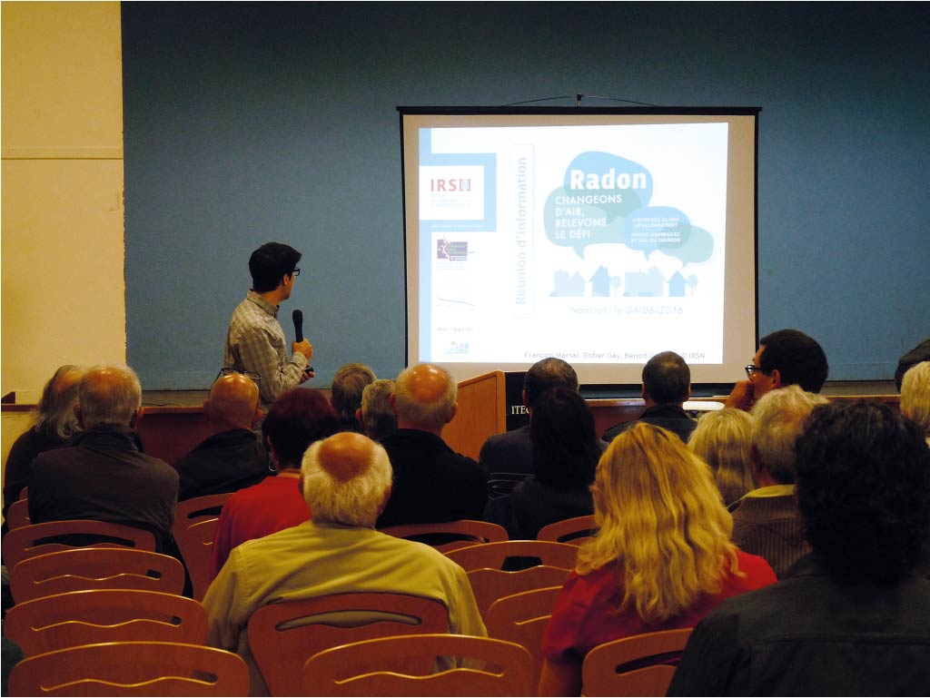 À l’issue de la restitution des résultats, quatre réunions d’information, ouvertes à tous, ont été organisées. Elles ont rassemblé près de 300 personnes. Des spécialistes de l’IRSN et des représentants du Lycée des métiers du bâtiment de Felletin (Creuse) ont fourni aux participants des données de base pour comprendre l’origine des concentrations et les moyens d’y remédier. Ils étaient invités à réfléchir eux-mêmes aux solutions adaptées à leur logement. Ceux qui le souhaitaient ont échangé avec les experts du Lycée. Au cours d’ateliers, ils ont confronté leur analyse et obtenu des conseils pour définir ou préciser les actions. “Notre objectif est de responsabiliser les habitants, en les orientant vers les solutions adaptées”, précise Didier Gay.