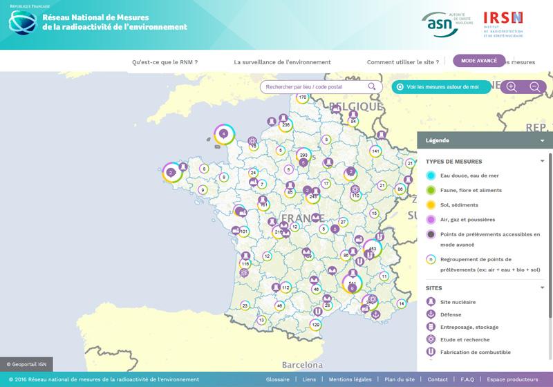 Le site www.mesure-radioactivite.fr met à disposition du  public 300 000 mesures de radioactivité réalisées en France chaque année. - © Réseau national de mesures de la radioactivité de l'environnement