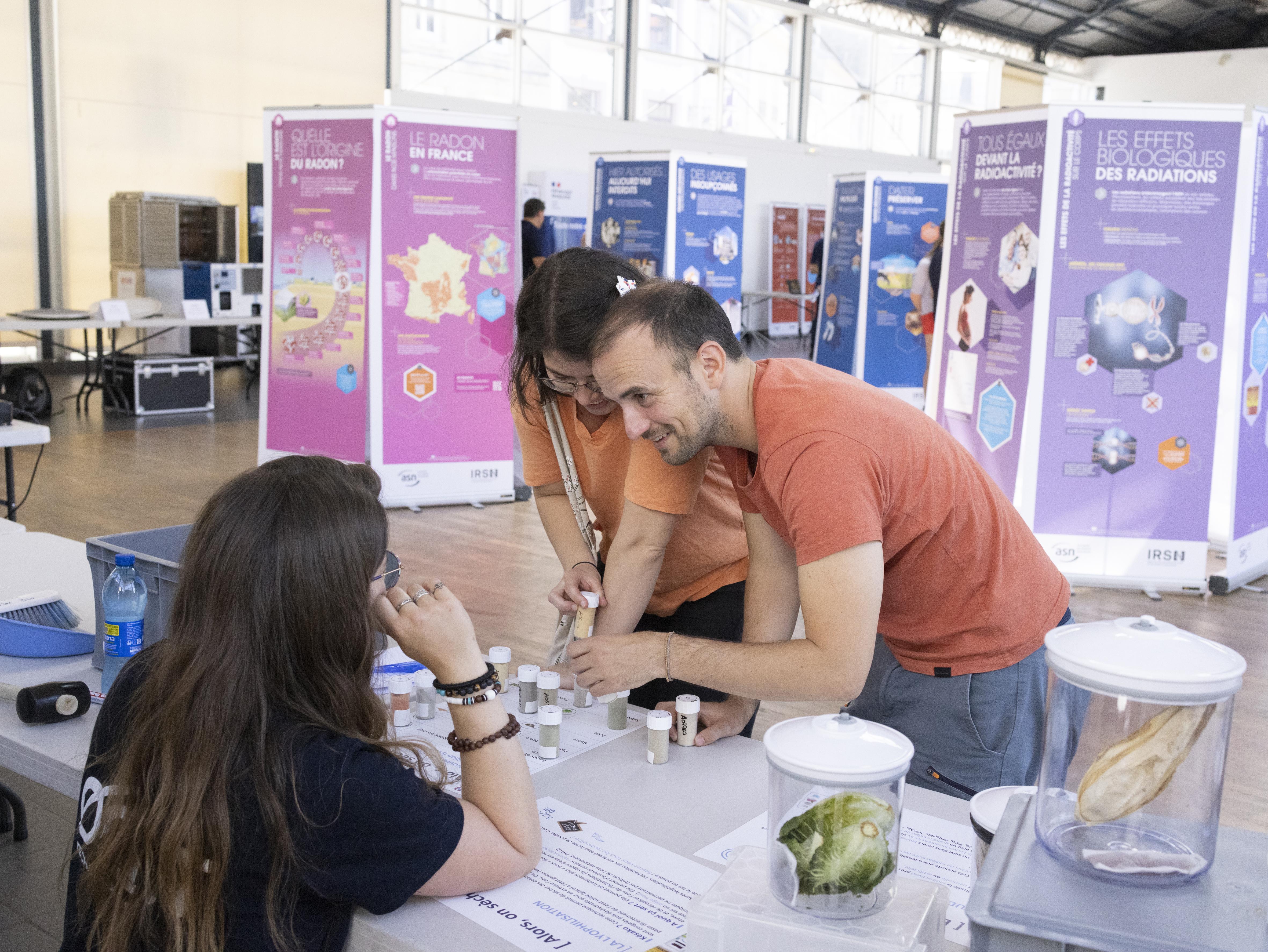 Les visiteurs posent de nombreuses questions tout en participant aux différents ateliers : expériences de mesure de pH, identification d’aliments séchés et broyés, fonctionnement d’un réacteur à l’appui d’une maquette, découverte des engins déployés en cas d’incident ou d’accident radiologique (véhicule, drone marin, etc.)... Même les mieux renseignés quittent la salle en ayant acquis de nouvelles connaissances sur des dispositifs comme les dosimètres, sur des méthodes d’analyse… « C’est ludique, ça parle. J’étais loin de me douter que ce secteur est aussi contrôlé. On a appris beaucoup de choses et c’est toujours bien d’apprendre », sourit l’un des visiteurs.