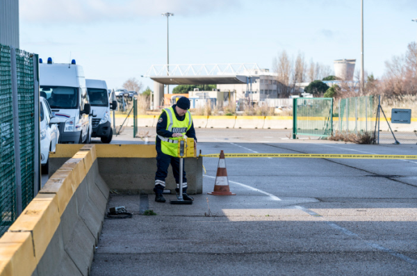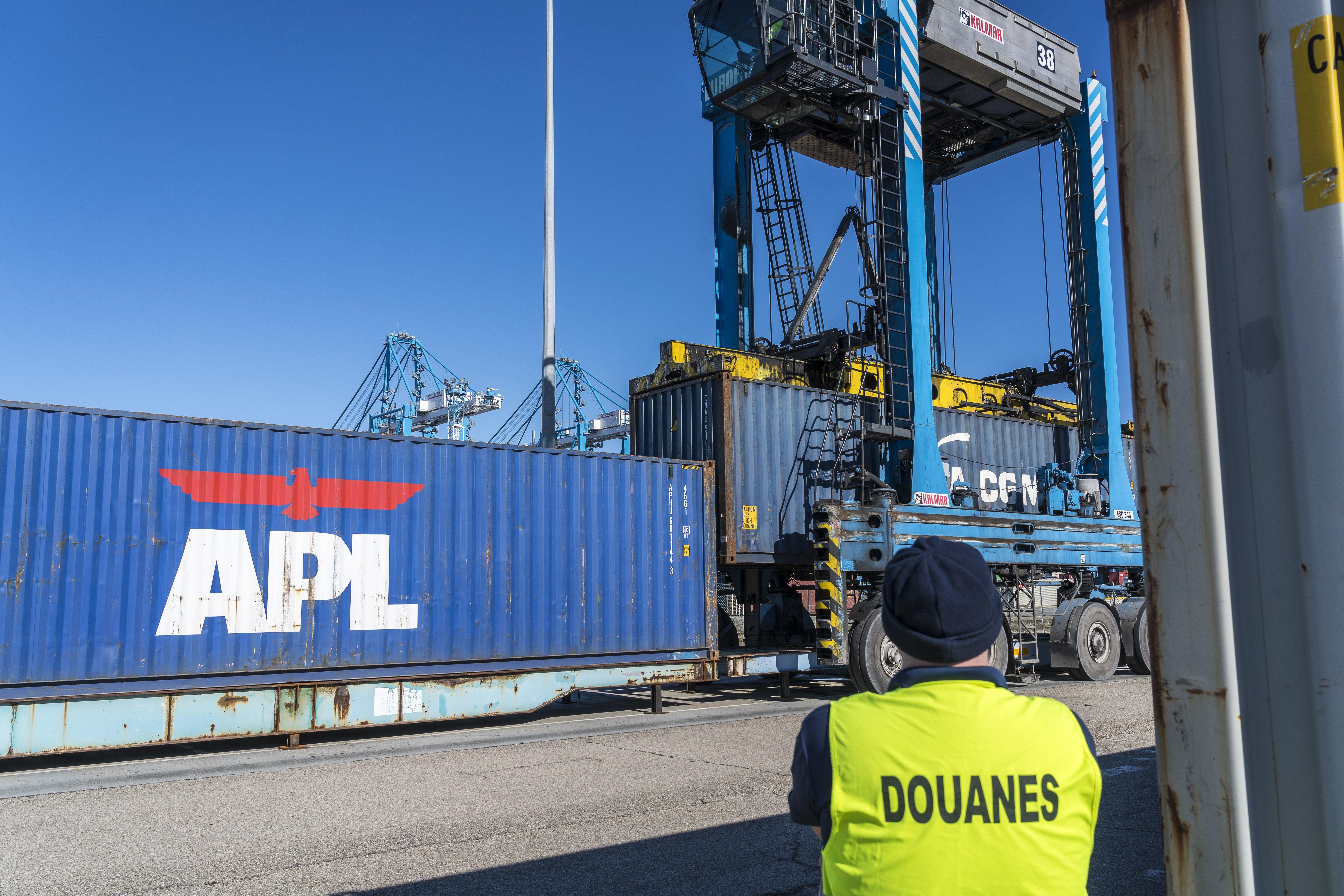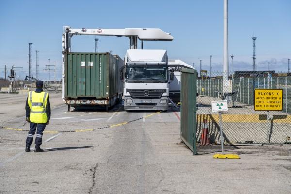 À Euro-Fos, les conteneurs entrent et sortent par le même côté dans le périmètre sécurisé pour le contrôle radiologique. Les douaniers se postent devant cet accès afin d’empêcher toute intrusion dans la zone.