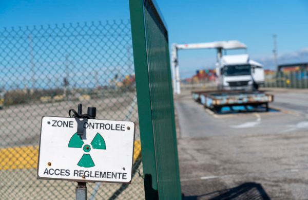 Les piles de conteneurs multicolores se détachent sous le ciel bleu de Provence comme les briques d’un jeu de construction géant. À côté de Marseille, le terminal portuaire de Fos-sur-Mer (Bouches-du Rhône) constitue un des principaux points d’entrée et de transit des marchandises en France. Ce 6 mars 2018, un camion scanner mobile de la douane1 prend position dans le terminal EuroFos. Il diffuse des rayonnements ionisants, et des mesures de radioprotection sont mises en place. Les douaniers sécurisent le périmètre avec des balises infrarouges. Le camion possède son propre équipage de quatorze personnes : opérateurs images et systèmes, tous détenteurs du Camari2. Depuis la cabine de pilotage blindée, un agent déploie le bras articulé qui contient le scanner à rayons X. Dans une seconde cabine, elle aussi doublée de plomb, un opérateur surveille le périmètre sécurisé et analyse l’image. Des dosimètres actifs sont disposés dans chaque cabine et à l’entrée du secteur circonscrit. Jean-Pierre Rittie, chef du service douanier de la surveillance, coordonne l’opération. Il mesure le bruit de fond avec un radiamètre, puis fait procéder à un tir à blanc pour contrôler l’équivalent de dose en limite de zone : l’aiguille ne dépasse pas les 2,4 μSv. « La dose de rayons X émise lors d’un examen est très faible : environ 0,003 mSv/scan3 sur le véhicule radiographié. En limite du périmètre, cette dose est quasiment nulle », souligne-t-il.