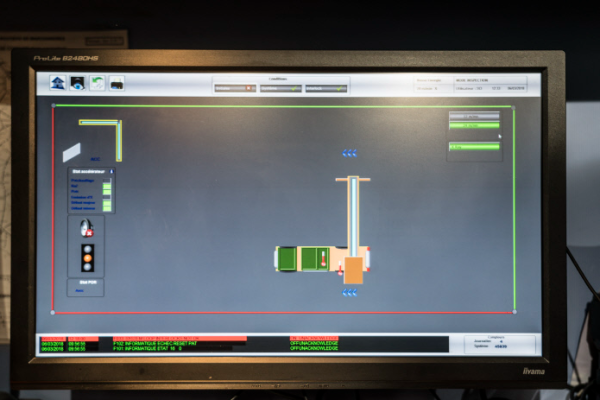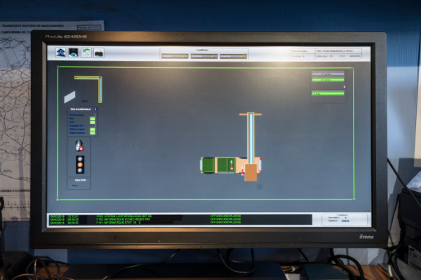 Cette fois, les 4 côtés sont verts. Le scanner peut radiographier le conteneur.